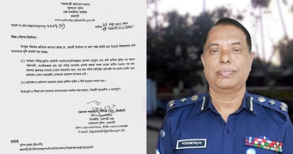 বুধবার (২৫ ফেব্রুয়ারি) বাংলাদেশ সচিবালয়ের মন্ত্রিপরিষদ বিভাগের কার্যালয়ে আয়োজিত এক অনুষ্ঠানে প্রধানমন্ত্রী তারেক রহমান নিজ হাতে নবনিযুক্ত পুলিশ মহাপরিদর্শক (আইজিপি) মো. আলী হোসেন ফকিরকে র্যাংক