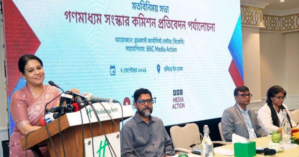 পরিবেশ উপদেষ্টা বলেন, গণমাধ্যমের সংস্কার ও উন্নয়নে সরকার ইতোমধ্যে একটি কমিটি গঠন করেছে। এই কমিটিতে পাঁচজন উপদেষ্টা রয়েছেন, যারা শুধুমাত্র কমিশনের সুপারিশ নয়, সংশ্লিষ্ট বিভিন্ন বিষয়ে পর্যালোচনা করছেন এবং পরামর্শ দিচ্ছেন।