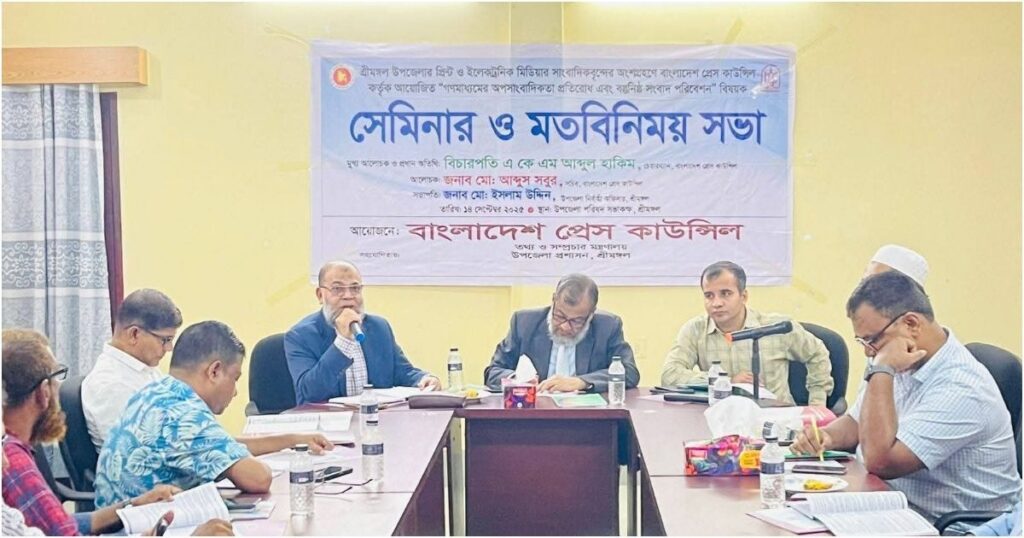 মৌলভীবাজারের শ্রীমঙ্গলে প্রিন্ট ও ইলেকট্রনিক মিডিয়ার সাংবাদিকদের অংশগ্রহণে অনুষ্ঠিত হয়েছে বাংলাদেশ প্রেস কাউন্সিলের আয়োজিত একটি গুরুত্বপূর্ণ সেমিনার ও মতবিনিময় সভা। বিষয়টি ছিল ‘অপসাংবাদিকতা প্রতিরোধ, সাংবাদিকতার নীতি ও নৈতিকতা, আচরণবিধি অনুসরণ এবং বস্তুনিষ্ঠ সংবাদ পরিবেশনের গুরুত্ব’।