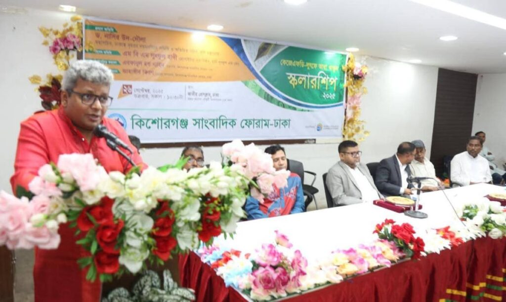 কিশোরগঞ্জ সাংবাদিক ফোরাম ঢাকা প্রথমবারের মতো তাদের উদ্যোগে সন্তানদের জন্য কেজেএফডি-লুৎফে আরা খাতুন স্কলারশিপ ২০২৫ প্রদান করেছে। এ উপলক্ষে আজ ২৬ সেপ্টেম্বর শুক্রবার সকাল ১১টায় জাতীয় প্রেসক্লাবের জহুর হোসেন চৌধুরী মিলনায়তনে একটি অনুষ্ঠানের আয়োজন করা হয়, যেখানে বিশিষ্ট অতিথিরা উপস্থিত ছিলেন। প্রধান অতিথি হিসেবে উপস্থিত ছিলেন ঢাকা মহানগরী বৃহত্তর ময়মনসিংহ সমিতির সভাপতি ও কৃষি মন্ত্রণালয়ের অতিরিক্ত সচিব ড. নাসির উদ-দৌলা। বিশেষ অতিথি ছিলেন বলহাদী লুৎফুল এন্ড কোং এর প্রোপাইটার ও সিইও এম বি এম লুৎফুল হাদী। অনুষ্ঠানের সভাপতিত্ব করেন কিশোরগঞ্জ সাংবাদিক ফোরাম ঢাকার সভাপতি এরফানুল হক নাহিদ, এবং স্বাগত বক্তব্য দেন সংগঠনের সাধারণ সম্পাদক জাহাঙ্গীর কিরণ। এছাড়াও বক্তব্য রাখেন সাবেক সভাপতি আজিজুল হক এরশাদ, ঢাকা সাংবাদিক বহুমুখী সমবায় সমিতির সম্পাদক শফিউল আলম দোলন, নেত্রকোনা সাংবাদিক ফোরাম ঢাকার সভাপতি রফিক মুহাম্মদ, কেজেএফডির সহসভাপতি সফিকুল ইসলাম, যুগ্ম সম্পাদক এম শাহাজাহান, জনকল্যাণ সম্পাদক গোলাম রসুল ভূইয়া ও সমাজসেবক শাহরিয়ার শামীম। অনুষ্ঠানে সঞ্চালনায় ছিলেন কেজেএফডির সিনিয়র সহ-সভাপতি হামিদ মোহাম্মদ জসিম। এই অনুষ্ঠানে অষ্টম শ্রেণী থেকে উচ্চতর পর্যায়ে অধ্যয়নরত ২০টি পরিবারের ২০ সন্তানকে কেজেএফডি-লুৎফে আরা খাতুন স্কলারশিপ ২০২৫ হিসেবে নগদ দশ হাজার টাকা ও ক্রেস্ট দেওয়া হয়, যা তাদের শিক্ষা জীবনকে এগিয়ে নেওয়ার অঙ্গীকার।