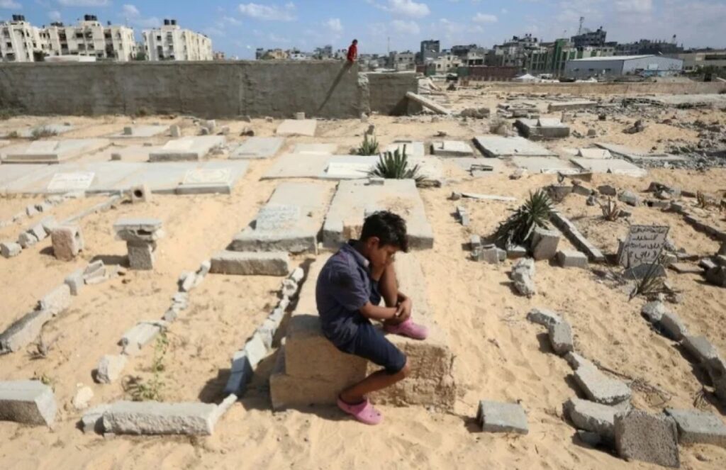 দক্ষিণ গাজার একটি কবরস্থানে সমাধিফলকের মধ্যে তিন শিশু বালি ও নুড়িপাথর নিয়ে খেলছে। একই সময়ে এক কিশোর খালি পায়ে কবরস্থানের মধ্য দিয়ে দুই বালতি পানি বহন করে তাঁর তাবুতে ফিরে যাচ্ছে। এই ভয়াবহ দৃশ্যগুলো প্রতিদিনের বাস্তবতা তাদের জন্য, যারা অন্য কোথাও আশ্রয় না পেয়ে এই কবরস্থানে তাদের জীবিকা নির্বাহের জন্য আশ্রয় গ্রহণ করেছেন। গাজার খান ইউনিস থেকে এএফপি এই খবর পরিবেশন করেছে।