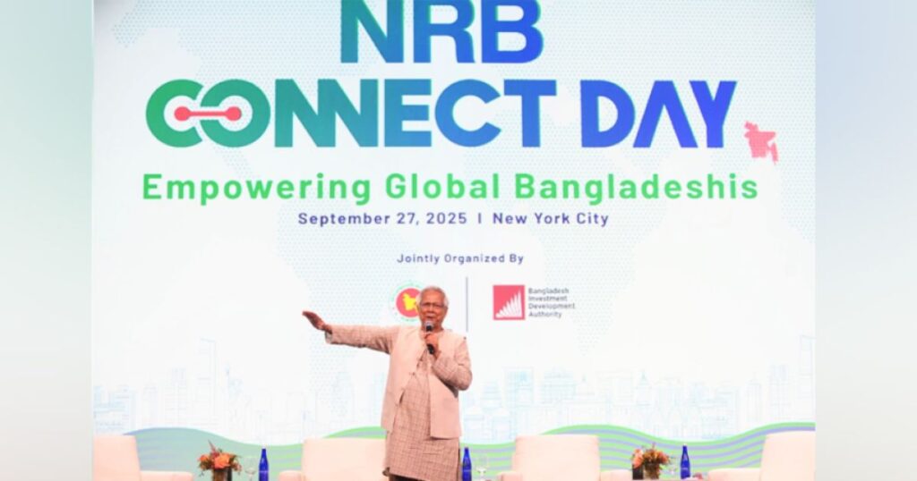 প্রধান উপদেষ্টা অধ্যাপক মুহাম্মদ ইউনূস প্রবাসী বাংলাদেশিদের অবদানকে প্রশংসা করে বলেছেন, জুলাই গণঅভ্যুত্থানের পরে দেশের অর্থনীতিকে শক্তিশালী রাখতে পাঠানো রেমিট্যান্সের ভূমিকা অনস্বীকার্য। তিনি বলেন, আমাদের অর্থনীতি অনেকটাই গতিপথ হারিয়ে গিয়েছিল; কিন্তু প্রবাসীদের পাঠানো রেমিট্যান্সই এটিকে রক্ষা করেছে। অর্থনীতিকে শক্তিশালী করার জন্য এটি মূল চালিকা শক্তি হিসেবে কাজ করেছে। শনিবার নিউইয়র্কের মেরিয়ট মার্কুইসে অনুষ্ঠিত ‘এনআরবি কানেক্ট ডে: এমপাওয়ারিং গ্লোবাল বাংলাদেশিজ’ শীর্ষক অনুষ্ঠানে তিনি এসব কথা বলেন, যেখানে প্রবাসী বাংলাদেশিরা অংশগ্রহণ করেন।প্রধান উপদেষ্টা ব্যক্তিগতভাবে বাংলাদেশকে নিয়ে অত্যন্ত আশাবাদী বলে উল্লেখ করেন। তরুণ জনগোষ্ঠীর সম্ভাবনাও তিনি তুলে ধরেন—বাংলাদেশের বিশাল সংখ্যক তরুণ জনশক্তি দেশের উন্নয়নে গুরুত্বপূর্ণ অবদান রাখতে পারে। তিনি বিদেশি কোম্পানিগুলোর জন্য বাংলাদেশের কারখানা স্থানান্তরের আহ্বান জানান, যাতে এই মানবসম্পদ কাজে লাগানো যায় এবং বাংলাদেশকে একটি উৎপাদন কেন্দ্র হিসেবে গড়ে তোলা সম্ভব হয়। প্রবাসীদের উদ্দেশ্যে বলে থাকেন, ‘আপনারা এখন বাংলাদেশের অংশ। আত্মবিশ্বাস নিয়ে বিনিয়োগ ও ধারণা নিয়ে আসুন।’ তিনি আশ্বাস দেন, আগামী জাতীয় নির্বাচনে প্রবাসীদের ভোটাধিকার নিশ্চিত করা হবে।আঞ্চলিক অর্থনীতির প্রসঙ্গে বলেন, নেপাল, ভুটান ও ভারতের কিছু রাজ্য সমুদ্রবন্দরের অভাবে স্থলবেষ্টিত। যদি আমরা তাদের জন্য সমুদ্রবন্দর উন্মুক্ত করতে পারি, তাহলে সকলেরই লাভ হবে। তখন সবার বাংলাদেশমুখী হওয়ার সুযোগ তৈরি হবে। ২০০৬ সালের নোবেল শান্তি পুরস্কার বিজয়ী অধ্যাপক ইউনূস জানান, সমুদ্রের সম্ভাবনাগুলো কাজে লাগাতে তিনি বেশ কিছু আলোচনা আরভাবে করেছেন। কক্সবাজার ও মাতারবাড়ির গভীর সমুদ্রবন্দর নির্মাণের পরিকল্পনাও রয়েছে। এর পাশাপাশি বঙ্গোপসাগরের গ্যাস সম্পদ অনুসন্ধানের প্রয়োজনীয়তাও তিনি গুরুত্ব দেন।অনুষ্ঠানের সূচনায় বাংলাদেশ বিনিয়োগ উন্নয়ন কর্তৃপক্ষের (বিডা) নির্বাহী চেয়ারম্যান আশিক চৌধুরী বাংলাদেশের অর্থনীতির বর্তমান উন্নয়ন পরিস্থিতি নিয়ে প্রেজেন্টেশন করেন। তিনি বলেন, সরকারের সাম্প্রতিক পদক্ষেপের ফলে মূল্যস্ফীতি নিয়ন্ত্রণে আসছে, বৈদেশিক মুদ্রার রিজার্ভ বৃদ্ধি পাচ্ছে এবং বিদেশি বিনিয়োগ দ্বিগুণের কাছাকাছি পৌঁছেছে। ২০২৪ সালের গণঅভ্যুত্থানের পরেও দেশের অর্থনীতি পুনরুদ্ধারে প্রবাসীদের ভূমিকা গুরুত্বপূর্ণ হবে বলে তিনি উল্লেখ করেন।অনুষ্ঠানে ‘হারনেসিং ডায়াসপোরা অ্যাজ অ্যা ন্যাশনাল অ্যাসেট’ শীর্ষক প্যানেল আলোচনা অনুষ্ঠিত হয়, যেখানে প্রধান উপদেষ্টার আন্তর্জাতিক বিষয়ক বিশেষ দ