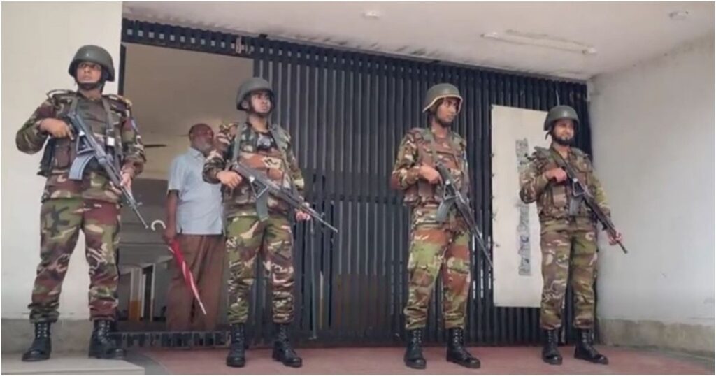 রাজধানীর আজিমপুরের দায়রাসরীফ এলাকায় সাবেক সংসদ সদস্য হাজী মোহাম্মদ সেলিমের একটি বাসভবনকে ঘিরে রেখেছে আইনশৃঙ্খলা রক্ষা বাহিনী। রবিবার (২৮ সেপ্টেম্বর) দেড়টার দিকে সেখানে উপস্থিতি দেখা গেছে। সূত্র জানায়, ভবনটির নীচতলা পার্কিংয়ের গোপন কক্ষ থেকে ছয়টি বিলাসবহুল গাড়ি উদ্ধার করা হয়েছে। এই ঘটনায় ভবনের ব্যবস্থাপককে জিজ্ঞাসাবাদের জন্য আটক করা হয়েছে।