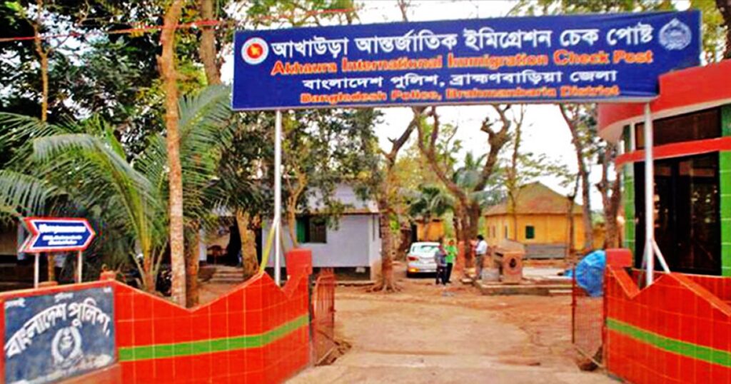 হিন্দু ধর্মাবলম্বীদের সবচেয়ে বড় ধর্মীয় উৎসব শারদীয় দুর্গাপূজা উদযাপনের জন্য আখাউড়া স্থলবন্দরে আগামী ৯ দিন পুরোপুরি বন্ধ থাকবে আমদানি ও রপ্তানি কার্যক্রম। তবে এতে ব্যাঘাত না ঘটিয়ে, স্থল শুল্ক স্টেশন ও ইমিগ্রেশন চেকপোস্টের কার্যক্রম স্বাভাবিকভাবে চালু থাকবে। এ সময় শুধুমাত্র পাসপোর্টধারী যাত্রী পারাপার নির্বিঘ্নে চলবে বলে সংশ্লিষ্ট কর্মকর্তারা আশ্বাস দিয়েছেন। শনিবার আখাউড়া স্থলবন্দরের মাছ রফতানিকারক অ্যাসোসিয়েশনের সাধারণ সম্পাদক মো. ফারুক মিয়া বলেন, শারদীয় দুর্গাপূজা ও লক্ষ্মীপূজা উপলক্ষে দুই দেশের ব্যবসায়ী সিদ্ধান্ত নিয়েছেন, আগামী সোমবার থেকে পরবর্তী মঙ্গলবার পর্যন্ত অর্থাৎ মোট নয় দিন সব ধরনের আমদানি-রপ্তানি বন্ধ থাকবে। তবে ৮ অক্টোবর বুধবার থেকে আবার নিয়মিত কার্যক্রম শুরু হবে। আখাউড়া স্থল শুল্ক স্টেশনের রাজস্ব কর্মকর্তা ওয়াহিদুজ্জামান খান জানিয়েছেন, বন্ধ থাকলেও কাস্টমসের কার্যক্রম স্বাভাবিকভাবে চলবে। পাশাপাশি যাত্রীদের সুবিধার্থে ইমিগ্রেশনের পরিষেবাগুলো নির্বিঘ্নে পরিচালিত হবে। অন্যদিকে, ইমিগ্রেশন চেকপোস্টের ইনচার্জ মোহাম্মদ আব্দুস সাত্তার বলেছেন, পূজা ও লক্ষ্মীপূজা উৎসবের কারণে ৯ দিন আমদানি-রপ্তানি বন্ধ থাকলেও যাত্রীরা ইমিগ্রেশন পাসপোর্ট ও ভিসার মাধ্যমে স্বাভাবিকভাবে পার হতে পারবে। প্রতিদিন সকাল ৮টা থেকে সন্ধ্যা সাড়ে ৬টা পর্যন্ত এই কার্যক্রম চলবে। উল্লেখ্য, দেশের অন্যতম বড় রপ্তানিমুখী আখাউড়া স্থলবন্দর দিয়ে ভারতের ত্রিপুরা রাজ্যের রাজধানী আগরতলায় প্রতিদিন বিভিন্ন পণ্য, যেমন মাছ, সিমেন্ট ও ভোজ্য তেল রফতানি করা হয়। এসব পণ্য দেশের উত্তর-পূর্বাঞ্চলের বিভিন্ন রাজ্যে সরবরাহ করা হয়।