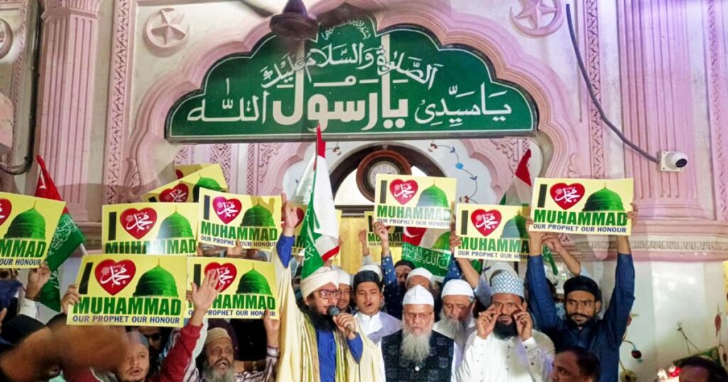 স্তাবিতে ভরা ছিল। এর ফলে দুই সম্প্রদায়ের মধ্যে উত্তেজনা ছড়িয়ে পড়ে। হিন্দু সংগঠনগুলো দাবি করে, তাঁদের পোস্টার ছিঁড়ে ফেলা হয়েছে, অন্যদিকে মুসলিমরা অভিযোগ করেন যে, নবীজি প্রেম প্রকাশের জন্য তারা হুঁশিয়ারি সহকারে টার্গেট হয়েছেন। এই বিষয়টি সোশ্যাল মিডিয়ায় ব্যাপক প্রতিক্রিয়া সৃষ্টি করে।
