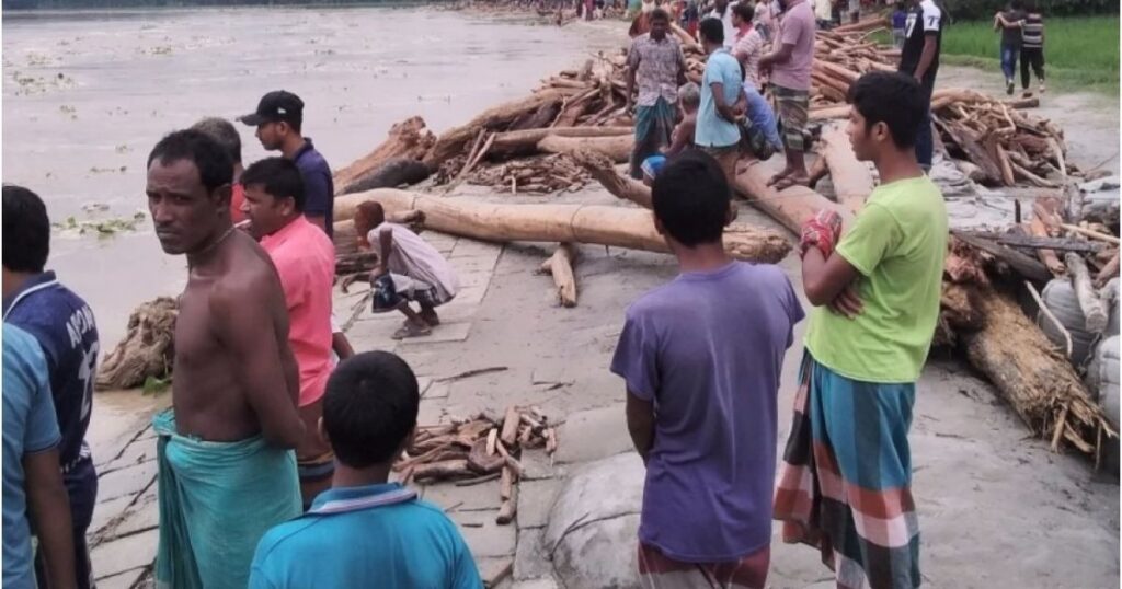 কুড়িগ্রামের নাগেশ্বরী উপজেলার বেরুবাড়ি ইউনিয়নে ভারত থেকে ভেসে আসা গাছের গুঁড়ি সংগ্রহ করতে গিয়ে ধান ব্যবসায়ী মনসুর আলী নিখোঁজ হয়েছেন। এই ঘটনার ঘটনা ঘটেছে সোমবার (৬ অক্টোবর) সকালে। স্থানীয়রা জানান, উজানের ঢলের কারণে দুধকুমার নদে হাজার হাজার গাছের গুঁড়ি ভেসে আসতে শুরু করে। নদীর তীরে বসবাসকারী গ্রামবাসীরা বিভিন্নভাবে সেগুলোর সংগ্রহ শুরু করেন। সকালে মনসুর আলীও অন্যদের মতো গাছের গুঁড়ি সংগ্রহ করতে যান, তখনই তিনি নদীতেই নিখোঁজ হন। ঘটনা জানাজানি হলে স্থানীয়রা দ্রুত সহকর্মীদের সহায়তায় উদ্ধারের তৎপরতা শুরু করেন। ফায়ার সার্ভিসের উদ্ধারকর্মীরা ঘটনাস্থলে পৌঁছে নিখোঁজ ব্যক্তির খোঁজা শুরু করে, কিন্তু দুপুর ১টার পর্যন্ত তার কোনও খোঁজ পাওয়া যায়নি। নাগেশ্বরী থানার ডিউটি অফিসার মাহেরূন্নেসা এই তথ্য নিশ্চিত করেছেন। তিনি বলেন, নিখোঁজ ব্যক্তির সন্ধানে পুলিশ ও ফায়ার সার্ভিসের পরish্রমা চালাচ্ছে, তবে এ পর্যন্ত তার কোনও সন্ধান মেলেনি।