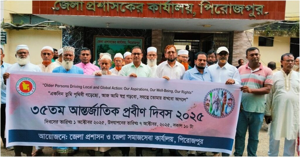 পিরোজপুরে আন্তর্জাতিক প্রবীণ দিবস ২০২৫ ব্যাপক উৎসাহ ও ধরণের সঙ্গে পালিত হয়েছে। এই দিবসের মূল স্লোগান ছিল, “একদিন এই পৃথিবী গড়েছো, আজ আমি স্বপ্ন গরবো, সযত্নে তোমায় রাখবো আগলে”। সংবর্ধনা ও সচেতনতা বার্তা প্রচারের জন্য জেলা প্রশাসন ও জেলা সমাজসেবা কার্যালয়ের উদ্যোগে নানা কর্মসূচি চলে।