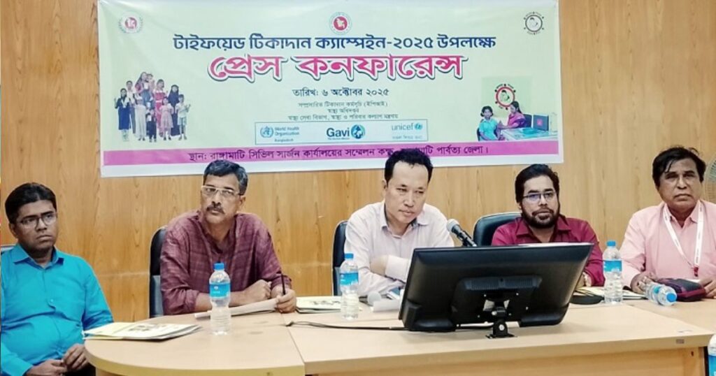 রাঙামাটিতে চলতি মাসে মোট ১ লাখ ৫৪ হাজার ৭৪৯ শিশুকে টাইফয়েড প্রতিরোধী টিকা দেওয়া হবে। এর জন্য সোমবার বিকেলে রাঙামাটি সিভিল সার্জন কার্যালয়ে এক সংবাদ সম্মেলন আয়োজিত হয়, যেখানে সিভিল সার্জন ডা. নূয়েন খীসা এ তথ্য নিশ্চিত করেন।