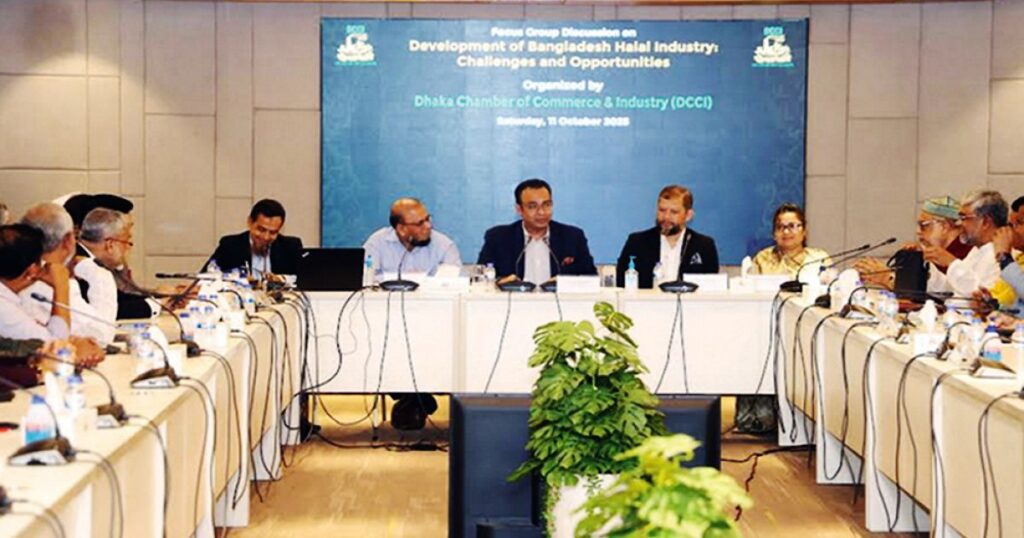 শনিবার ঢাকা চেম্বার অব কমার্স অ্যান্ড ইন্ডাস্ট্রি (ডিসিসিআই) আয়োজিত ‘বাংলাদেশের হালাল শিল্পের উন্নয়ন: চ্যালেঞ্জ ও সম্ভাবনা’ শীর্ষক ফোকাস গ্রুপ আলোচনা সভায় বক্তারা এসব কথা বলেন। এই অনুষ্ঠানে স্বাগত বক্তব্যে ঢাকা চেম্বার এর সহসভাপতি রাজিব এইচ চৌধুরী বলেন, হালাল শিল্প এখন শুধু একটি ধর্মীয় আচার বা বিধান নয়, এটি আন্তর্জাতিক অর্থনীতির দ্রুতবর্ধনশীল ও সম্ভাবনাময় এক খাত।