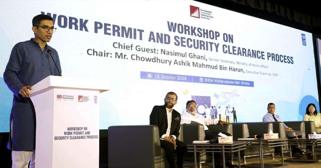 বাংলাদেশ বিনিয়োগ উন্নয়ন কর্তৃপক্ষের (বিডা) নির্বাহী চেয়ারম্যান চৌধুরী আশিক মাহমুদ বিন হারুন জানান, সরকার ভিসা ফি প্রদানের প্রক্রিয়াকে সম্পূর্ণরূপে ডিজিটালাইজড করছে এবং সমগ্র ভিসা নীতিমালা সংশোধনের জন্য গুরুত্বপূর্ণ পদক্ষেপ নিচ্ছে। তিনি বলেন, বর্তমানে এই প্রক্রিয়াকে অনলাইনে পরিশোধের জন্য ডিজিটাল করার কাজ চলমান। এর ফলে আবেদনকারীরা ঘরে বসেই সহজে ভিসা ফি পরিশোধ করতে পারবেন, ফলে শারীরিক উপস্থিতির প্রয়োজন হবেনা। বুধবার রাজধানীতে বিডার মাল্টিপারপাস মিলনায়তনে অনুষ্ঠিত ‘ওয়ার্ক পারমিট ও সিকিউরিটি ক্লিয়ারেন্স প্রসেস’ শীর্ষক কর্মশালার সভাপতির ভাষণে তিনি এসব কথা বলেন। চৌধুরী আশিক মাহমুদ বলেন, সরকার ভিসা নীতিমালার ব্যাপক সংস্কারে কাজ করছে, যাতে দীর্ঘদিন ধরে সামগ্রিক সমস্যাগুলির সমাধান করা যায়। তিনি আরও জানান, ১ অক্টোবর থেকে অনলাইন সিকিউরিটি ক্লিয়ারেন্স প্রক্রিয়াটি চালু হয়েছে। আগে যেখানে ৩৪টি নথি জমা দিতে হত, সেখানে এখন তা কমিয়ে ১১টিতে আনা হয়েছে, যা একটি বড় অগ্রগতি। এটি বিভিন্ন দপ্তর থেকে নথি চাওয়ার ঝামেলা কমিয়েছে। বিডা চেয়ারম্যান জোর দিয়ে বলেন, সরকারের সব কার্যক্রমে জাতীয় নিরাপত্তার বিষয় গুরুত্ব পায় এবং এর সঙ্গে আপসের কোনও সুযোগ নেই। তিনি বলেন, আমরা এমন কিছু করতে চাই না যা জাতীয় নিরাপত্তা সংক্রান্ত প্রশ্ন তোলে বা বিপদ সৃষ্টি করে। স্বরাষ্ট্র মন্ত্রণালয় ও বিডার লক্ষ্য সব সময় এক হয় এবং তারা সচেতনভাবে কাজ করছে। তিনি আরো বলেন, আমাদের একমাত্র লক্ষ্য হলো— সকল সংস্থা যেন নিরাপদে ও সমন্বিতভাবে কাজ করে এবং দেশের স্বার্থ সর্বোচ্চ গুরুত্ব দিয়ে সমস্যা সমাধান করে। কর্মশালায় জাতীয় নিরাপত্তা গোয়েন্দা সংস্থা (এনএসআই), স্পেশাল ব্রাঞ্চ (এসবি), স্বরাষ্ট্র মন্ত্রণালয় ও বিডা তাদের নিজস্ব অভিজ্ঞতা ও চ্যালেঞ্জ তুলে ধরেন। স্বরাষ্ট্র মন্ত্রণালয়ের অতিরিক্ত সচিব মো. দেলোয়ার হোসেন ও বিডা মহাপরিচালক মো. আরিফুল হক বক্তব্য দেন। আরিফুল হক জানিয়েছেন, এই কর্মশালায় ইমিগ্রেশন, পাসপোর্ট বিভাগসহ অন্যান্য সংশ্লিষ্ট সংস্থাগুলোর তথ্য ও চ্যালেঞ্জ নিয়ে বিশদ আলোচনা হয়েছে। তিনি উল্লেখ করেন, সকল সংস্থা এক পরিবারের সদস্য হিসেবে একই উদ্দেশ্যে কাজ করছে। পাশাপাশি তিনি কর্মকর্তাদের আহ্বান জানিয়েছেন, তারা যেন তাদের অভিজ্ঞতা ও সমস্যা নিয়মিতভাবে ভাগ করে নেন, কারণ এসব তথ্য ভবিষ্যত সিদ্ধান্ত গ্রহণে গুরুত্বপূর্ণ ভূমিকা রাখবে।