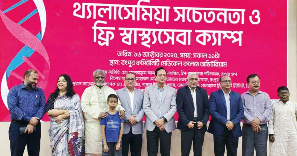 রংপুরে প্রায় ২৭ শতাংশ মানুষ থ্যালাসেমিয়ার বাহক হিসেবে พบ গেছে। এ ছাড়া প্রতিবছর বাংলাদেশে ৫ থেকে ৮ হাজার নতুন থ্যালাসেমিয়ার রোগী শনাক্ত হয়। বিয়ের আগে রক্ত পরীক্ষা করে যদি থ্যালাসেমিয়ার বাহক নারীর বা পুরুষের বিয়ে বন্ধ করা যায়, তবে এই রোগের প্রতিরোধ শতভাগ সম্ভব হবে বলে মনে করেন বিশেষজ্ঞরা। বৃহস্পতিবার দুপুরে রংপুর কমিউনিটি মেডিকেল কলেজের মিলনায়তনে অনুষ্ঠিত ‘থ্যালাসেমিয়া সচেতনতা ও বিনামূল্যে মেডিকেল ক্যাম্প’ বিষয়ক বৈজ্ঞানিক সেমিনারে এই গুরুত্বপূর্ণ তথ্য উপস্থাপন করেন চিকিৎসকরা। বাংলাদেশ থ্যালাসেমিয়া সমিতি ও হাসপাতালের উদ্যোগে আয়োজিত এই সেমিনারে স্বাগত বক্তব্য দেন বাংলাদেশ থ্যালাসেমিয়া সমিতির নির্বাহী পরিচালক ডা. একরামুল হোসেন স্বপন। তিনি বক্তৃতায় জানান, থ্যালাসেমিয়া বাহক ও রোগীর মধ্যে পার্থক্য রয়েছে। বাহকের কোনো উপসর্গ দেখা যায় না এবং তাদের চিকিৎসার প্রয়োজন হয় না। তবে তারা পরবর্তী প্রজন্মের জন্য রোগ বহন করতে সক্ষম। যদি সবাই সচেতন হন এবং বিয়ের আগে রক্ত পরীক্ষা করে বাহককে এড়ানো যায়, তাহলে এই রোগের বিস্তার রোধ সম্ভব। চিকিৎসকরা আরও বলছেন, থ্যালাসেমিয়া রোগের চিকিৎসা খুব খরচালু, ফলে অনেক পরিবার অর্থের জন্য নিঃস্ব হয়ে যায়। তাই রোগের নিরাময় ও প্রতিরোধে সবাইকে সচেতন হওয়ার আহ্বান জানানো হয়। সেমিনারে সভাপতিত্ব করেন রংপুর কমিউনিটি মেডিকেল কলেজের অধ্যক্ষ অধ্যাপক ডা. শরিফুল ইসলাম। প্রধান অতিথি হিসেবে উপস্থিত ছিলেন রংপুর গ্রুপের উপব্যবস্থাপনাপরিচালক আশরাফুল আলম আল আমিন এবং বিশেষ অথিতি হিসেবে ছিলেন রংপুর গ্রুপের পরিচালক মোহাম্মদ মোয়াজ্জেম হোসেন সরকার।