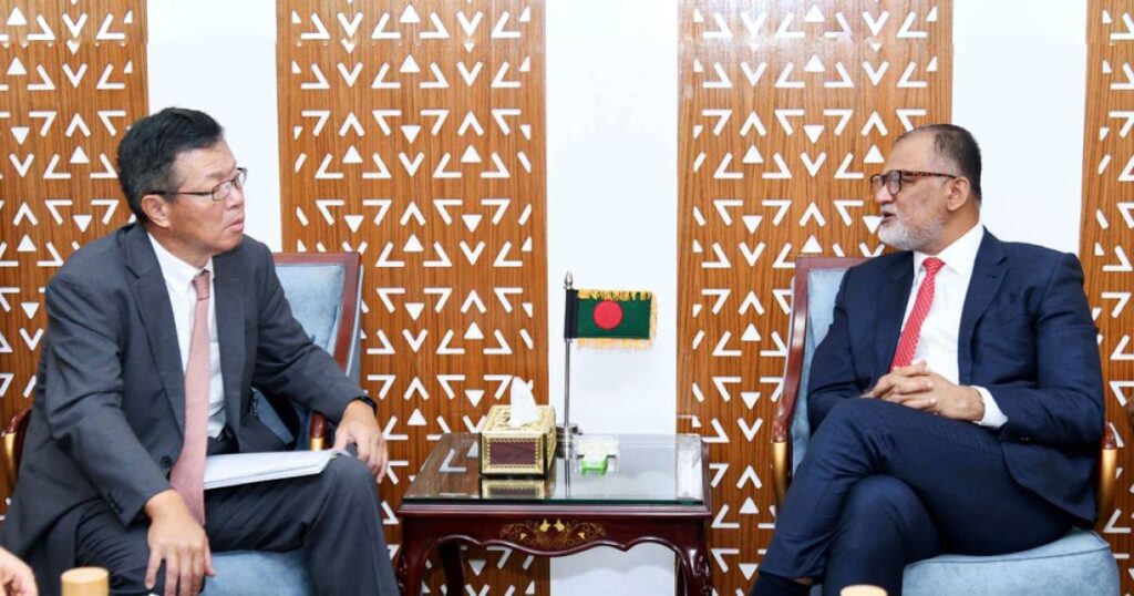 বুধবার সচিবালয়ে বাণিজ্য উপদেষ্টার কার্যালয়ে বাংলাদেশে জাপানের রাষ্ট্রদূত সাইদা শিনিচির সাথে এক গুরুত্বপূর্ণ বৈঠক অনুষ্ঠিত হয়েছে। এই বৈঠকটি দুজনের মধ্যে দ্বিপাক্ষিক বাণিজ্য সম্প্রসারণ, ভবিষ্যত পরিকল্পনা ও শাহজালাল আন্তর্জাতিক বিমানবন্দরের থার্ড টার্মিনালের নির্মাণ প্রকল্পের অগ্রগতি নিয়ে বিস্তারিত আলোচনা জন্য ছিল।
