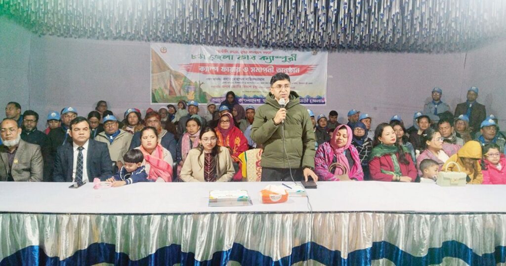 নীলফামারীতে এ বছর অনুষ্ঠিত হয়েছে আটটি জেলা কাব ক্যাম্পুরী, যা স্থানীয় কাব স্কাউটদের মধ্যে নৈতিকতা, শৃঙ্খলা, নেতৃত্ব ও মানবিক মূল্যবোধের উৎকর্ষতা বৃদ্ধিতে গুরুত্বপূর্ণ ভূমিকা পালন করেছে। ‘করব, সুন্দর বাংলাদেশ গড়ব’ এই প্রতিপাদ্যকে সামনে রেখে গত রোববার, ১৪ ডিসেম্বর, রাতে নীলফামারী সরকারি উচ্চবিদ্যালয় মাঠে অনুষ্ঠিত হয় এই ক্যাম্পুরীর সমাপনী ও সাংস্কৃতিক অনুষ্ঠান। এই অনুষ্ঠানের মাধ্যমে আনুষ্ঠানিকভাবে সমাপ্তি ঘোষণা করা হয় ক্যাম্পুরীর। প্রধান অতিথি হিসেবে উপস্থিত ছিলেন জেলা প্রশাসক মোহাম্মদ নায়িরুজ্জামান, যিনি এই আয়োজনে তার গভীর কৃতজ্ঞতা ও সমর্থন জানান। অতিরিক্ত জেলা প্রশাসক (সার্বিক) জ্যোতি বিকাশ চন্দ্র ও জেলা সাধারণ সম্পাদক আতাউর রহমান উপস্থিত এই সামারিক অনুষ্ঠানে সভাপতিত্ব করেন। বক্তারা বলেন, কাব স্কাউটদের মধ্যে নৈতিকতা, শৃঙ্খলা, নেতৃত্বের গুণাবলি ও সামাজিক দায়িত্ববোধের বিকাশের জন্য এই ধরনের ক্যাম্পুরী অপরিহার্য। তারা উল্লেখ করেন, স্কাউটিং কার্যক্রম শিশু-কিশোরদের মধ্যে দেশপ্রেম, মানবিক মূল্যবোধ এবং সামাজিক দায়িত্ববোধ জাগ্রত করে, যা তাদের দক্ষ ও ভবিষ্যত প্রজন্ম হিসেবে গড়ে তুলতে সহায়ক। অনুষ্ঠানে জেলা স্কাউটসের বিভিন্ন পর্যায়ের নেতৃবৃন্দ, শিক্ষক, কাব স্কাউট লিডার এবং বিভিন্ন শিক্ষাপ্রতিষ্ঠানের কাব স্কাউটরাও অংশগ্রহণ করেন। এই আয়োজনটি স্থানীয় যুব সমাজের বিকাশে এক গুরুত্বপূর্ণ পদক্ষেপ বলে বক্তারা মনে করছেন।