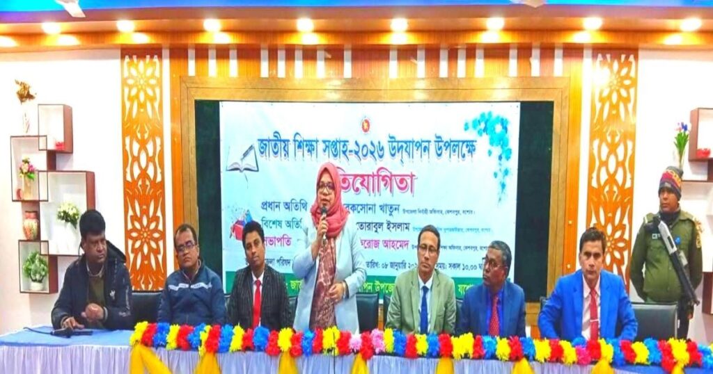 যশোরের কেশবপুরে জাতীয় শিক্ষা সপ্তাহ-২০২৬ উপলক্ষে বিভিন্ন শিক্ষা প্রতিষ্ঠানের শিক্ষার্থীদের অংশগ্রহণে একটি দিনব্যাপী বিশেষ বর্ণাঢ্য প্রতিযোগিতা অনুষ্ঠিত হয়েছে। বৃহস্পতিবার (৮ জানুয়ারি) সকালে এই উৎসবের আয়োজন করে উপজেলা জাতীয় শিক্ষা সপ্তাহ উদযাপন কমিটি। স্থানীয় উপজেলা পরিষদ মিলনায়তনে অনুষ্ঠিত এই প্রতিযোগিতায় শিক্ষার্থীরা বিভিন্ন ক্যাটাগরিতে তাদের প্রতিভা প্রকাশ করে। এসব ক্যাটাগরিতে ছিল কেরাত, হামদ, নাত, বাংলা ও ইংরেজি রচনাসহ কবিতা আবৃত্তি, উপস্থিত বক্তৃতা, দেশাত্মবোধক গান, রবীন্দ্রসংগীত, নজরুলসংগীত, উচ্চাঙ্গসংগীত ও লোকসংগীত। প্রতিটি বিভাগে শিক্ষার্থীরা নিজেদের দক্ষতা ও সৃজনশীলতা দেখানোর সুযোগ পেয়ে উপস্থিত সবাইকে মুগ্ধ করে। অনুষ্ঠানে সভাপতিত্ব করেন উপজেলা মাধ্যমিক শিক্ষা অফিসার সেখ ফিরোজ আহমেদ। প্রধান অতিথি হিসেবে উপস্থিত ছিলেন কেশবপুর উপজেলা নির্বাহী অফিসার রেকসোনা খাতুন, যিনি এই দিনটির উদ্বোধন করেন। প্রধান অতিথির বক্তব্যে রেকসোনা খাতুন বলেন, শিক্ষার অর্থ শুধুমাত্র পরীক্ষায় ভালো ফল অর্জন নয়; বরং এটি মানুষকে মানুষ করে গড়ে তোলে। একজন শিক্ষিত ব্যক্তি পরিবার, সমাজ ও দেশের উন্নতিতে অবদান রাখতে পারে। তিনি উল্লেখ করেন, আজকের এই মঞ্চে দাঁড়ানো শিক্ষার্থীরা ভবিষ্যতের নেতৃত্ব তৈরি করবে বাংলাদেশকে। তিনি আরও বলেন, এই প্রজন্মকে প্রযুক্তির সাথে তাল মিলিয়ে চলতে হবে পাশাপাশি মানবিক মূল্যবোধ লালন করতে হবে। বইয়ের জ্ঞান ও বাস্তব জীবনের নৈতিক শিক্ষার সমন্বয় থাকলে সত্যিকারের আলোকিত মানুষ গড়ে উঠবে। রেকসোনা খাতুন আশাবাদ ব্যক্ত করেন যে, কেশবপুরের শিক্ষার্থীদের মধ্যে যে আত্মবিশ্বাস ও প্রতিভা দেখা যাচ্ছে, এতে প্রমান হয় এখান থেকেই উঠে আসবে বাংলাদেশের গুণীজন। অভিভাবক ও শিক্ষকদের উদ্দেশ্যে তিনি বলেন, শিশুদের প্রতিভা বিকাশে পরিবার ও শিক্ষকরা অপরিহার্য। পড়াশোনা ছাড়াও সহশিক্ষা কার্যক্রমে উৎসাহ দেয়া হলে শিক্ষার্থীরা আরও আত্মবিশ্বাসী ও দক্ষ হয়ে উঠবে। উপস্থিত ছিলেন উপজেলা একাডেমিক সুপারভাইজার মো. তোরাবুল ইসলাম, কেশবপুর সরকারি পাইলট উচ্চ মাধ্যমিক বিদ্যালয়ের অধ্যক্ষ আবু তালেব, উপজেলা আইসিটি অফিসার সৌমিত্র বিশ্বাস, সহকারী উপজেলা শিক্ষা অফিসার হারুনর রশীদ ও উপজেলা রিসোর্স সেন্টারের ইন্সট্রাক্টর মোহা. সাইদুল হক। অনুষ্ঠানের পরিচালনা করেন উপজেলা শিশু বিষয়ক কর্মকর্তা (অতিরিক্ত দায়িত্ব) বিমল কুমার কুন্ডু। সার্বিকভাবে, এই প্রতিযোগিতার মাধ্যমে শিক্ষার্থীদের মেধা, মননশীলতা ও সৃজনশীলতার বিকাশ ঘটেছে, যা কেশবপুরে জাতীয় শিক্ষা সপ্তাহ-২০২৬ কে করেছে আরও প্রাণবন্ত ও সফল।