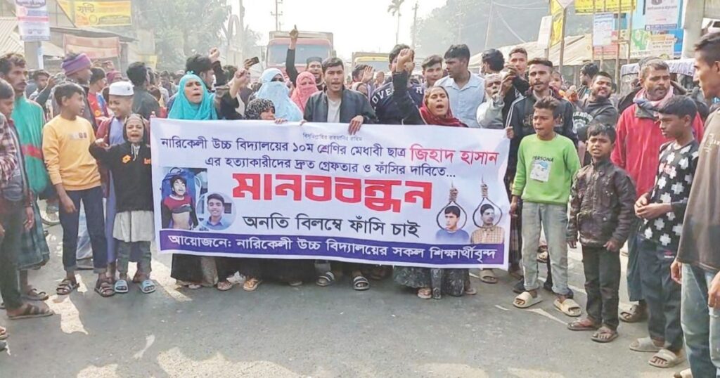 জামালপুরে দশম শ্রেণির শিক্ষার্থী জিহাদের হত্যাকাণ্ডের প্রতিবাদে বৃহস্পতিবার সকালে এলাকাবাসী আন্দোলন চালিয়ে যায়, যেখানে তারা মূলত হত্যাকারীদের দ্রুত গ্রেপ্তার ও কঠোর শাস্তির দাবি জানিয়েছেন। ঘটনাটি ঘটে জামালপুর সদর উপজেলার গহেরপাড়া এলাকায়, যেখানে জামালপুর-টাঙ্গাইল মহাসড়ক অবরোধ করে শতাধিক স্থানীয় বাসিন্দা ও শিক্ষার্থীরা। এই সড়ক অবরোধের সময় নিহত জিহাদের মা তাহমিনা আক্তার শোভা, তার বড় ভাই অনন্ত এবং চাচাতো ভাই সাকিসহ অন্যান্য স্বজনরা ক্ষোভে ফেটে পড়েন ও বক্তব্য রাখেন। বক্তারা বলেন, ৭ জানুয়ারি সন্ধ্যায় পূর্ব পরিকল্পনামাফিক গহেরপাড়া পশ্চিমপাড়া এলাকার মুন্না, আবুল কাশেম, সাঈদসহ কয়েকজন যুবক জিহাদকে মারধর করে ধারালো অস্ত্র দিয়ে খুন করে। এই ঘটনায় ইতোমধ্যে একটি মামলা দায়ের করা হলেও এখনো কোনও আসামীকে গ্রেপ্তার করতে পারেনি পুলিশ। তারা দ্রুত সকল আসামির বিচারের দাবি জানান। অবরোধের কারণে আশপাশের সড়কে ব্যাপক যানজট সৃষ্টি হয়। পরিস্থিতি পর্যবেক্ষণে ঘটনাস্থলে উপস্থিত ছিলেন সদর থানার ওসি মিজানুর রহমান, যিনি জানান, মামলার মূল আসামিকে পুলিশ গ্রেপ্তার করে হেফাজতে নিয়েছে এবং অন্যান্য আসামিদের ধরিয়ে দেয়ার আশ্বাস দিয়েছেন। এক ঘণ্টার মধ্যে সড়ক অবরোধ প্রত্যাহার হয়ে পরিস্থিতি আবার স্বাভাবিক হয়। উল্লেখ্য, ৭ জানুয়ারি সন্ধ্যায় গহেরপাড়া এলাকায় আধিপত্য বিস্তারকে কেন্দ্র করে স্থানীয় ফিরোজ মিয়ার ছেলে জিহাদকে দুর্বৃত্তরা হত্যা করে। এই ঘটনায় জিহাদের বাবা ফিরোজ মিয়া তিনজনের নাম উল্লেখ করে আরো চার থেকে পাঁচজনকে অজ্ঞাত আসামি করে সদর থানায় হত্যা মামলাটি করেন। এই হত্যাকাণ্ডের শিকার জিহাদ স্থানীয় স্কুলের ছাত্র ছিলেন। এই হত্যাকাণ্ডের সুবিচার দাবিতে এলাকাবাসী ও শিক্ষার্থীরা স্বদেশের দাবি জানাচ্ছেন এবং দোষীদের দৃষ্টান্তমূলক শাস্তির প্রত্যাশা করছেন।