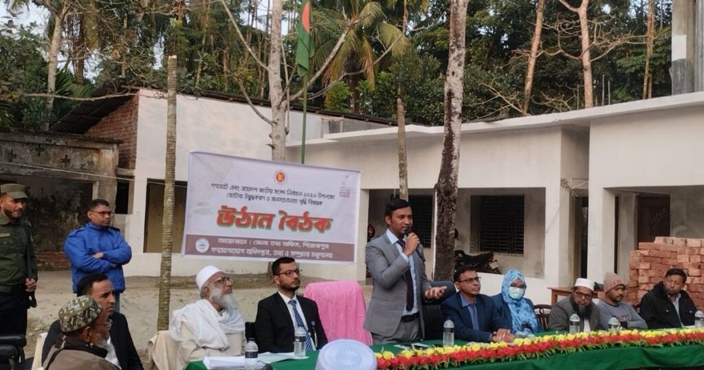 সোমবার বিকালে পিরোজপুরের সদর উপজেলার কদমতলা ইউনিয়নের খানাকুনিয়ারি P I R ফাজিল মাদ্রাসা প্রাঙ্গণে অনুষ্ঠিত এক উন্মুক্ত বৈঠকে বিভিন্ন দপ্তর ও সমাজের প্রতিনিধিরা অংশগ্রহণ করে দেশের গণতান্ত্রিক প্রক্রিয়ায় জনগণের গুরুত্বপূর্ণ ভূমিকা নিয়ে আলোচনা করেন। অনুষ্ঠানটি জেলা তথ্য অফিসের আয়োজনে মনোযোগ আকর্ষণ করেছিল, যেখানে ভবিষ্যৎ রাষ্ট্র পরিচালনার মূল উদ্যোগ গণভোটে জনগণের অংশগ্রহণের ওপর গুরুত্ব দেওয়া হয়।
