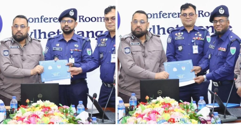 গত বৃহস্পতিবার, ৫ ফেব্রুয়ারি, সিলেট রেঞ্জ পুলিশ কল্যাণ ভবনের সম্মেলন কক্ষে অনুষ্ঠিত মাসিক অপরাধ পর্যালোচনা সভায় রেঞ্জ ডিআইজি মো. মুশফেকুর রহমান দুই কর্মকর্তার হাতে পুরস্কার তুলে দেন। অনুষ্ঠানে উপস্থিত ছিলেন মৌলভীবাজার জেলা পুলিশ সুপার মোহাম্মদ বিল্লাল হোসেনসহ অন্যান্য ঊর্ধ্বতন কর্মকর্তা।
