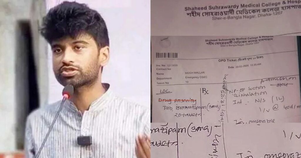 উদ্বেগনাশক ২০টি ট্যাবলেট সেবন করে হাসপাতালে ঢাবি ছাত্র ইউনিয়ন নেতা মেঘমল্লার বসু