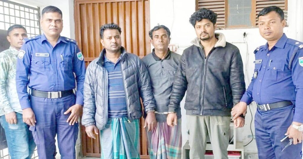 ঘটনাস্থল ও তথ্য বিশ্লেষণের পর পুলিশ চোর চক্রের চার সদস্যকে গ্রেপ্তার করে। আটক ব্যক্তিদের মধ্যে আছেন লোহাগড়া উপজেলার ইতনা গ্রামের তবিবর শেখের ছেলে মো. সজীব শেখ, ফরিদপুর জেলার নগরকান্দা উপজেলার কান্দি গ্রামের ছরোয়ার মাতবরের ছেলে মো. আলামিন, কালিয়া উপজেলার জয়পুর গ্রামের আবের শিকদারের ছেলে মো. সাজ্জাদ শিকদার এবং নড়াগাতী থানার খামার গ্রামের মো. হাবিবুর মোল্যার ছেলে সাইফুল ইসলাম।