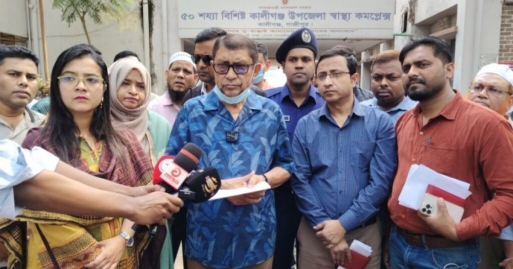গাজীপুরের কালীগঞ্জ উপজেলা স্বাস্থ্য কমপ্লেক্সে স্বাস্থ্যমন্ত্রী সরদার মো. সাখাওয়াত হোসেনের আকস্মিক পরিদর্শন হিসেবে, সেখানে বৈপরীত্য ও অনিয়মের দিকগুলো দেখা যায়। সকালে তিনি হঠাৎ করে হাসপাতালে এসে আসন্ন পরিস্থিতি পর্যবেক্ষণ করেন। পরিদর্শনের সময় ধরা পড়ে, কিছু চিকিৎসক ও কর্মচারী উপস্থিত ছিলেন না, বিশেষ করে উপজেলা স্বাস্থ্য ও পরিবার পরিকল্পনা কর্মকর্তা ডা. রেজওয়ানা রশিদ প্রথমে কর্মস্থলে না থাকায় পরে দ্রুত হাসপাতালে আসেন। তিনি তাঁকে ছুটিতে থাকার কারণ জানালেও, কোনো সঠিক অনুমোদিত কাগজ দেখাতে পারেননি।