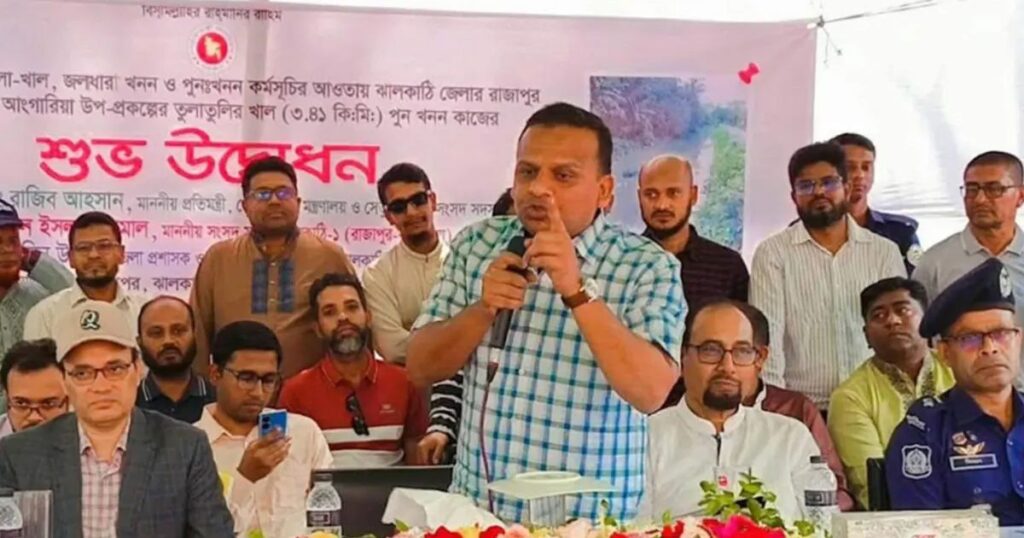 নৌপরিবহন ও সেতু প্রতিমন্ত্রী রাজিব আহসান রোববার ঝালকাঠির রাজাপুরে ৪ কোটি ৬৫ লাখ টাকা ব্যয়ে ৩.৪১ কিলোমিটার দীর্ঘ তুলাতলা খালের খনন কাজ উদ্বোধনের সময় খাল দখলকারীদের বিরুদ্ধে সামাজিক প্রতিরোধ গড়ে তোলার আহ্বান জানান। তিনি বলেন, খাল উদ্ধার করে মানুষের ব্যবহারোপযোগী করা সরকারের অগ্রাধিকার।