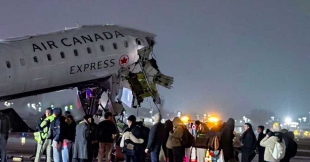 ফ্লাইট ট্র্যাকিং সাইট ফ্লাইটরাডার২৪ জানিয়েছে যে এয়ার কানাডার আঞ্চলিক সহযোগী জ্যাজ এভিয়েশনের সিআরজে-৯০০ মডেলের বিমানটি অবতরণের সময় প্রায় ৩৯ কিলোমিটার ঘণ্টা (২৪ মাইল) বেগে ওই যানবাহনটিকে আঘাত করে বলে রিপোর্ট করা হয়েছে।